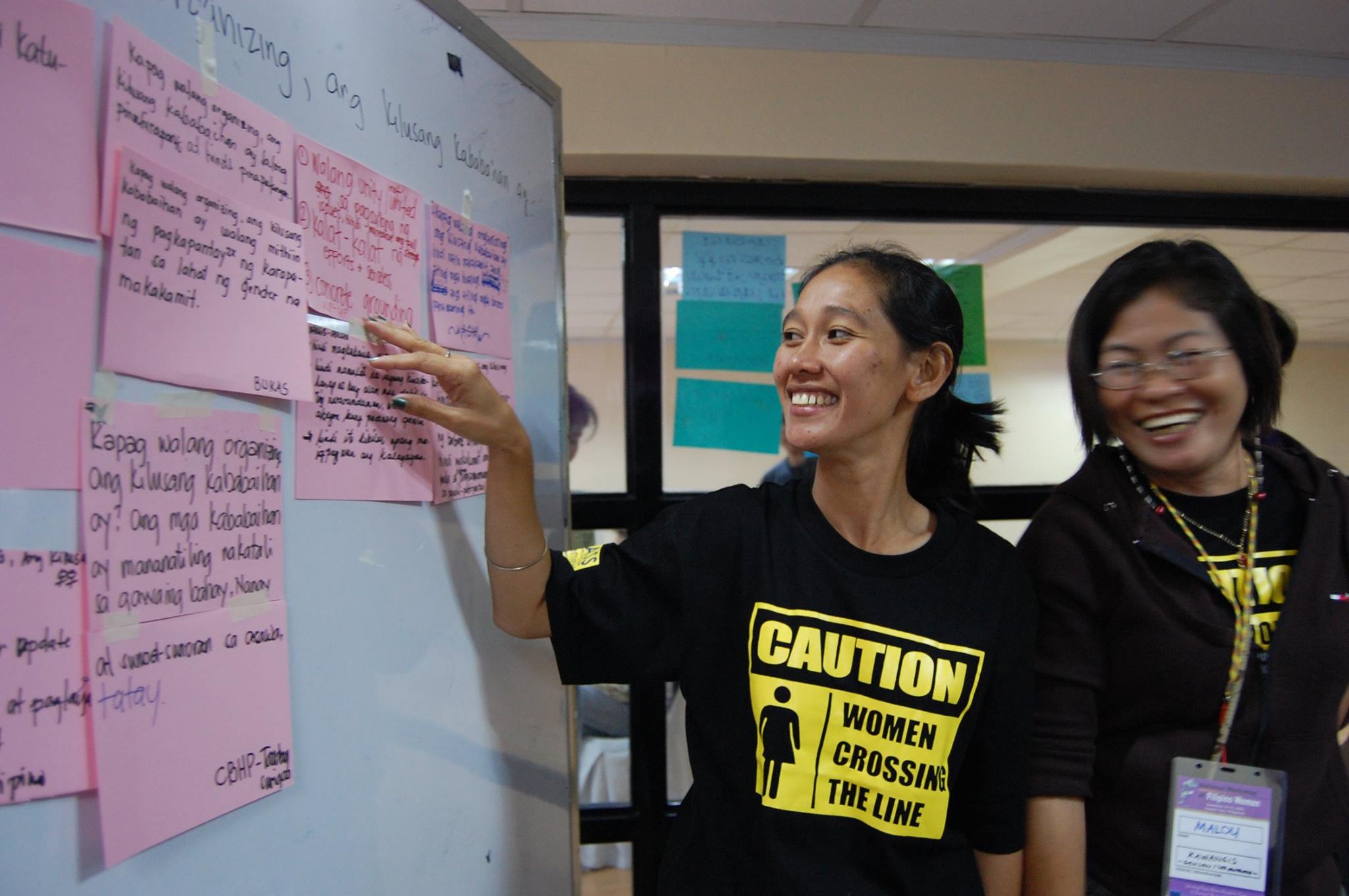 Women involved in our movement-building processes learn to use a power framework, along with other tools and methods of reflection and analysis developed by scholars and popular educators, to assess their contexts and issues, and to understand key historical moments as the foundation for developing strategies and solutions to their problems.