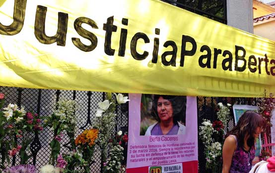 Despite the fact that Berta's murderers tried to paralyze social movements with her death, a few days after the murder, women, feminist leaders and other sectors joined to organize mobilizations in the streets of Honduras and the world. Confronted by Berta's murder, we deployed strong actions directed at 1) mobilization in the streets, 2) strengthening of global solidarity networks, 3) advocacy at the national and international level, 4) pressure in the media and 5) a legal campaign for justice. Popular organizations and human rights groups supported COPINH in the protests and demands for justice in La Esperanza and Tegucigalpa. COPINH reorganized its leadership to face the crisis and began to activate the relationships of solidarity that it had cultivated for years under Berta's leadership. Feelings of overwhelming sadness and defeat gave way to unprecedented national and international outrage, action, and support from a wide range of actors. Berta's daughters and the COPINH leadership spearheaded a phase of intense mobilization.