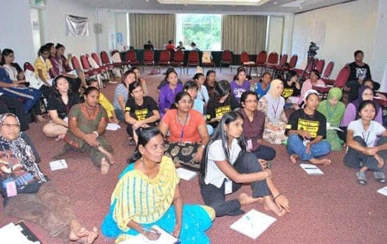 • Diving deep through country processes. We decided that we would continue to build solidarity at regional levels while going deep at national levels. In order to strengthen leadership and organizing capacity to better influence local and national policies and debates, we chose to expand our activist training and organizing processes beyond Indonesia to the national level in Cambodia, Malaysia, and the Philippines. From that point, trainings with women from Indonesia and Timor-Leste were held separately in order to delve deeper into their specific contexts and issues.