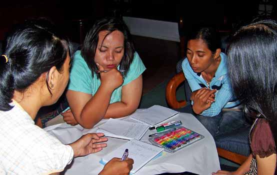 Programas nacionales lanzados en Malasia, Filipinas y CamboyaComo el trabajo de JASS tomaba impulso en Indonesia y Timor del Este, se realizaron tres talleres nacionales de liderazgo en noviembre de 2009, en los que se utilizaron herramientas de JASS y se aprovechó la presencia de “egresadas” locales de procesos anteriores promovidos por la organización. En cada taller, JASS SEA reunió los elementos más pertinentes para responder a las necesidades del grupo particular y su contexto. Los equipos de JASS llevaron a cabo amplias consultas para garantizar la diversidad de clase social, enfoque, ubicación y origen étnico, y negociar exitosamente las viejas tensiones que todavía persisten en algunos países.