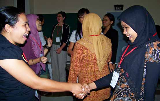 En 2007, en JASS decidimos convocar a nuestro primer Taller de Construcción y Fortalecimiento de Movimientos (TCFM) con 34 mujeres jóvenes, basado en las relaciones y la trayectoria de trabajo de Nani y Dina con jóvenes activistas de base en Indonesia y Timor Oriental. Algunas de estas jóvenes habían participado en los talleres de fortalecimiento de capacidades, tutorías y acompañamiento durante el periodo de 2001 a 2005. Escogimos a activistas de Indonesia y Timor Oriental, tomando en cuenta que compartían un idioma y el legado de dolorosas divisiones históricas.